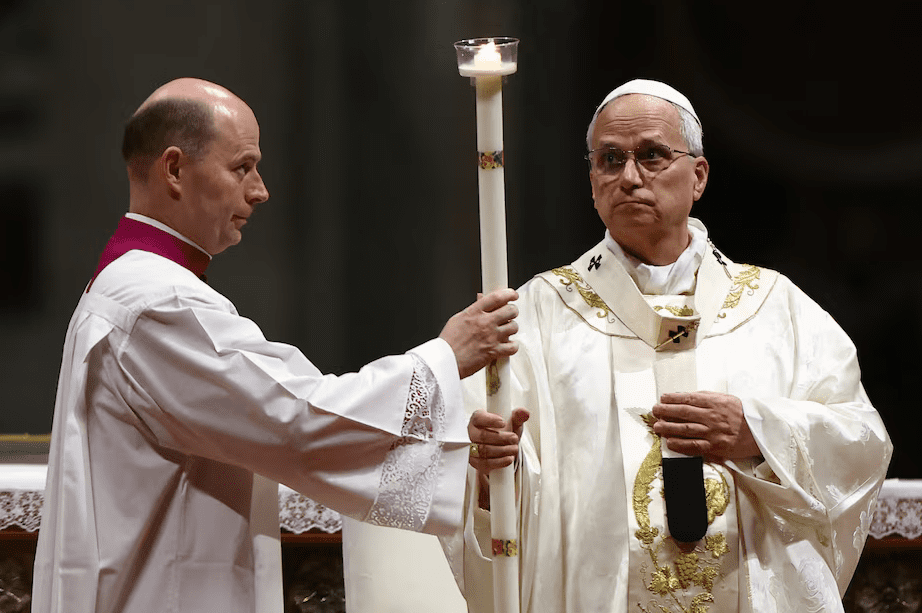 Pope Leo led the world’s Catholics into Easter at a Saturday night vigil Mass in St. Peter’s Basilica and urged people not to feel numbed by the scope of the conflicts raging across the world but to work for peace.