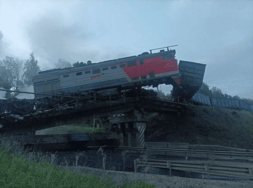The train was going from the town of Klimovo to Moscow, Russian Railways said. It collided with the collapsed bridge in the area of a federal highway in the Vygonichskyi district of the Bryansk region, Bogomaz said. The district lies some 100 km (60 miles) from the border with Ukraine.