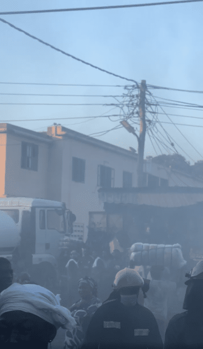 The early hours of Tuesday, October 21, 2025, saw the start of a large commercial fire that involved several stores along Kantamanto Tazani Lane close to Ecobank.