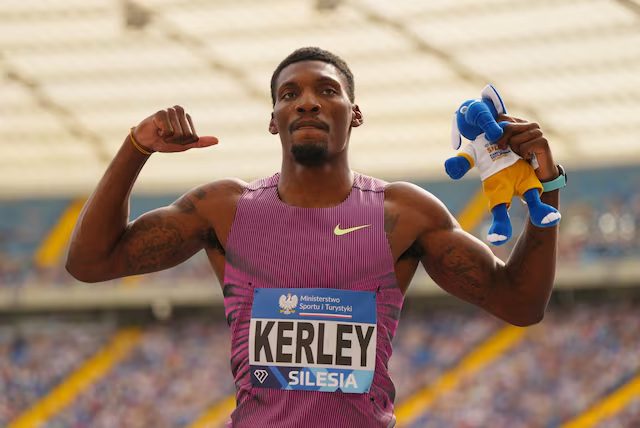 Kerley, 30, won silver in the 100 metres at the Tokyo Olympics and bronze in Paris last summer. He also captured the 100-metre world title in 2022.