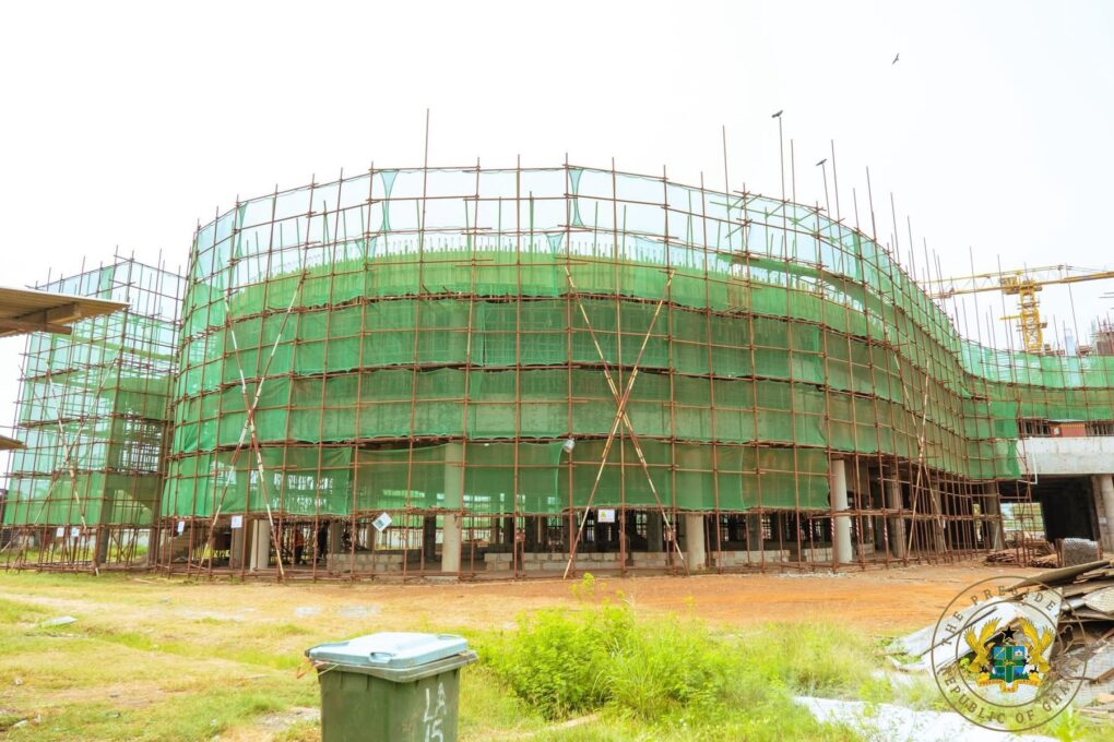 The President, accompanied by Kwabena Mintah Akandoh, the Minister of Health, praised contractors and employees for their consistent work, emphasising the necessity of maintaining pace in order to achieve the deadline.