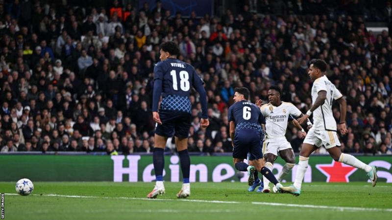 Jude Bellingham was on the bench for Real because of a shoulder problem, the first time since he joined the club that he has not started a Champions League match.