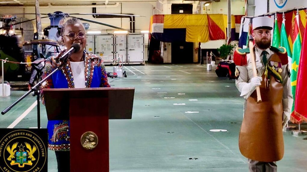 Captain Arnaud Bolelli and the crew of the French landing helicopter dock Tonnerre were honoured to be welcomed to Tema yesterday by Hon. Emelia Arthur.